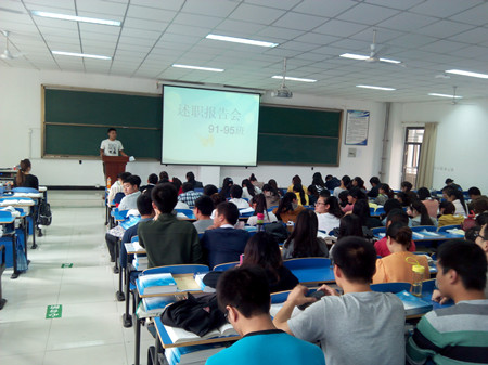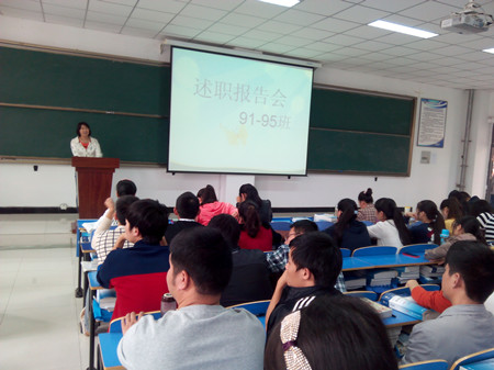 开学伊始,为了加强学生干部队伍建设,加强对学生骨干的组织与管理,提高班干部的综合能力素质,更好地发挥班干部在“自我教育、自我管理、自我服务”中的作用,在辅导员随洁英老师的带领下,精诚书院11级91-95班的学生骨干干部于9月18日在问学楼301教室进行了述职报告,考核上学期的班级工作。