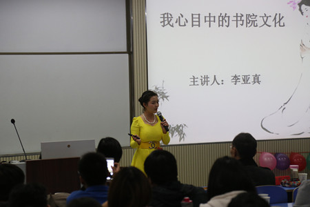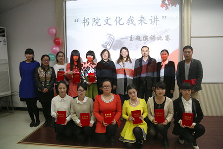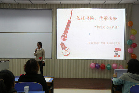 伊始,伴随着主持人宣布本次大赛的规则,现场气氛开始变得紧张。比赛过程中,选手们的表现有的风趣幽默,有的清新独立,有的激情昂扬,有的热泪盈眶,他们都以各自独特的风格展现了自己。他们的精彩演讲,赢得了评委老师及同学们的阵阵掌声,同时也让在座的同学们对书院文化有了更深入的了解。互动环节的两个精彩节目街舞和吉他弹唱缓和了现场紧张的比赛气氛,也为本次比赛增添了色彩。经过紧张激烈的角逐,14级新生李亚真同学最终以91.67分的成绩荣获一等奖,马倩、刘霄静同学荣获二等奖,单慧颖等三名同学获得三等奖,徐晓晴等四名同学获得优秀奖。最后,资讯中心王德胜老师的精彩点评,不仅让今天的参赛选手深有感触,也让在场的观众受益匪浅。