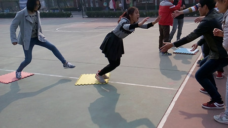 紧接着是“坐地起身”团队合作型的训练项目,从中成员们体验到,同学之间的配合与合作,是该项目的制胜法宝。团队协作竞技型的“无敌风火轮”项目重在培养学员团结一致,密切合作,克服困难的团队精神;培养计划、组织、协调能力;培养服从指挥、一丝不苟的工作态度;增强队员间的相互信任和理解。“横渡亚马逊”、“火车快跑”“鸡毛送信”等一系列训练项目,考察了同学们的团队意识,自己要以团队为核心,为团队竭尽全力争分夺秒。整个比拼期间,没有人退缩和放弃,”