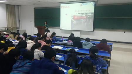 几支优秀团队结合自身项目,从项目构思、项目申报、项目实施、取得成果等环节,通过展示内容丰富的PPT形式,向广大低年级学生详细介绍了申请及开展社会实践活动的整体情况。其中,赴新乡社区服务居民团队汇报人毕凯燕,通过播放真实感人的音频和视频,与在场同学一同回忆了在社区开展活动的点点滴滴,温馨的画面,感人的场景,深深打动了在场观众。赴新庄小学义务支教筑梦队赵璐的真情发言也感染着现场的每一个人,他们的团队用爱心、耐心、和责任心鼓励小朋友们好好学习,将来用自己的实际行动为社会作出贡献。交流会最后,队员们还与同学们进行热烈的现场互动。部分低年级同学就项目申报,项目内容的选取等方面咨询了现场的队员。队员们一一作了详细解答。