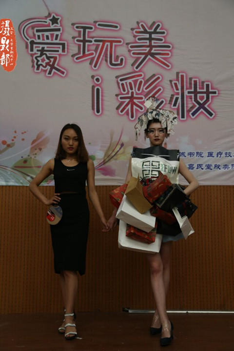 走秀展示之后,选手结合模特妆容从创作主题、创作理念、创作方法及灵感来源等方面对作品进行解说,随后评委给出最终得分。4号选手田梦圆灵感来源于三全学院黄昏时刻,采用医疗床单为模特打造了一套清新雅丽的抹胸裙,让观众连连称赞;7号选手刘少菲用卫生纸打造出一位纯洁的白天使,展示出创新的魅力;10号选手刘利雪用大家日常生活中购物的纸袋,塑造出一套时尚范儿十足的盛装。朴实无华的模特迅速大变身,妩媚迷人又不失优雅,清新自然又张扬活力,为观众们带来高贵别致的美妆享受。