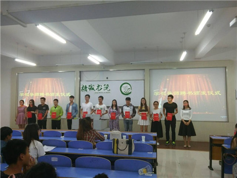 活动现场气氛热烈,精彩纷呈。15级影像专业学长导师戴旭通过一系列的照片影像,为我们讲述了他与新生相处的点点滴滴;15级口腔技术专业学生带来的歌曲《有没有那么一首歌》唱出了对学长导师茹雅静的不舍;“红利红利,大吉大利;红利红利,所向披靡”宏亮的口号喊出了15级医疗美容技术专业学生对学长导师张红利的认可和喜爱。风采展示之后杨卫红老师为学长导师工作做了总结,肯定了他们一年来的工作成果。接着,杨卫红、李彤两位老师一起为学长导师颁发聘书。最后,胡龙飞老师为殷宋词,张红利颁发优秀学长导师聘书。