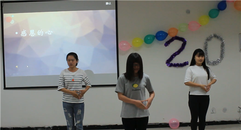 经过长达一周的着手准备工作,15级口腔全体学生即是演员亦是观众。预热感恩短片结束后,在全场观众热烈的掌声中,14级药学21班宋德朴同学的开场街舞show点燃全场,紧接着杨涓同学爆笑的英语秀‘吵架’令大家惊讶不已,范斌斌同学激情演唱的歌曲‘海芋恋’也让大家在听的过程中闻到了恋爱的味道;一首由齐聪同学演唱的日语歌《Better Fly》将全体同学的回忆带回到童年;李霏露等在小品《瞧,90后的女孩们》中的方言演绎让全场观众笑声连连,其间学长导师茹雅静更是以一首英语歌‘sparksfly’征服全场。最后朗诵《感恩和虔诚》和感恩的心手语表演使在座观众潸然泪下;