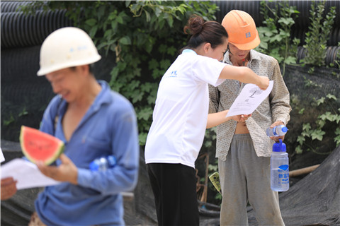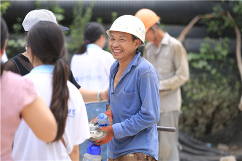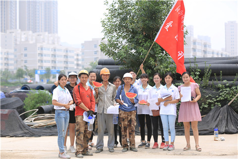 每当队员们给一线工人送去清凉,献上爱心时,他们见到实践队员都是既兴奋又感动,“大学生们很贴心,赠送的水、瓜果起到了避暑的作用,讲解的安全知识对我们也很实用”,说活时脸上不自觉地便扬起幸福的笑容。