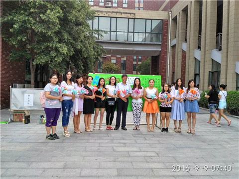 9月9日早7点,精诚书院学生第十党支部33名学生党员将自己亲手制作的教师节感恩祝福展板立于问学楼广场来表达对全校教师诚挚的祝福和感激之情,对每一个经过的老师,同学们都会向他们深深地鞠躬,深情地道一句“老师,您辛苦了,祝您节日快乐!”再送上一束亲手折叠的花朵,来表达对老师们无私教诲的感恩之心。