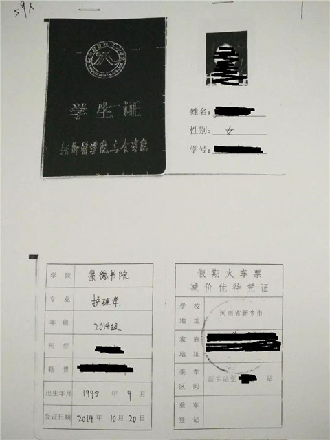 学生交的资料有:学生证复印件(A4纸)2张,身份证复印件(正反面A4纸)2张、1寸照片2张(贴在身份证的复印件上)。