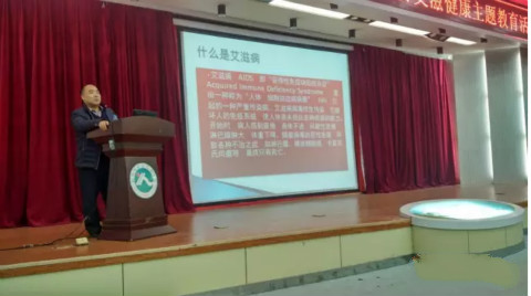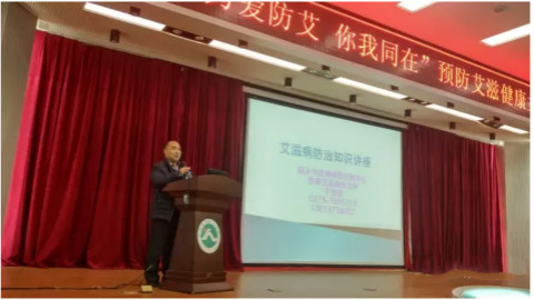 于贺军教授从“什么是艾滋病”、“艾滋病的特点”、“艾滋病的临床表现”、“艾滋病的好发人群”、“艾滋病的危害”,“艾滋病的传播途径”以及“防范艾滋病的策略和措施”七大方面向在座师生讲解宣传艾滋病。于教授通过艾滋病患者发病的图片,患者的心理状况等让同学们认识到艾滋病的可怕,一张张图片、一例例事件无不渲染着在座各位的心情,时时刻刻敲响着防艾的警钟。另外,于教授讲座当中多次强调身为医生,一定要严格每一道程序,否则轻下结论会给患者带来极大的伤害,还会引起医患矛盾关系的发生。最后,于教授说“防艾不只是对自己负责,更是对家庭、社会负责,为爱防艾,你我同在”。讲座结束后主办方向现场观众发放了预防艾滋病,预防传染病等宣传册。这些宣传册由于教授和红旗区医学院疾病预防中心提供。