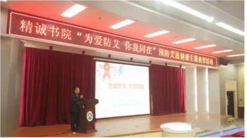 在世界艾滋病日来临之际,11月21日16:30,精诚书院“为爱防艾,你我同在”预防艾滋健康主题活动在新乡校区问学楼学术报告大厅顺利召开。本次活动我们邀请到的主讲人是河南省卫生计生委艾滋病防控专家、新乡市疾病预防控制中心艾防科科长于贺军教授。新乡医学院三全学院临床学院院长路成吉、精诚书院党总支副书记赵元雪及书院辅导员出席本次讲座。