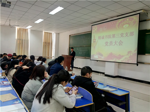 2017年2月22日上午10点整,精诚书院第三党支部全体成员在问学楼301教室召开新学期第一次党支部大会,此次会议由党支部书记李帅主持,第三党支部全体党员参加会议。