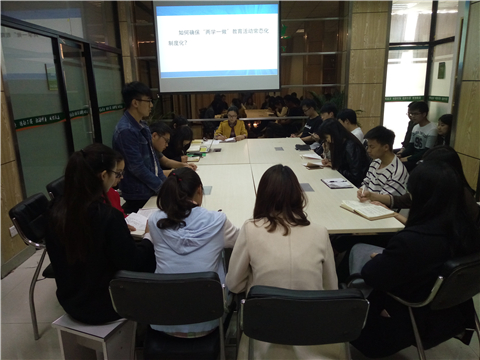 2017年4月20日中午,精诚书院第八党支部在平原校区精诚书院会议室召开了4月份党组织生活会。大会主要围绕 “两学一做”进行学习讨论、交流思想、开展批评与自我批评,会议由茹雅静主持,第八党支部全体党员参加会议。