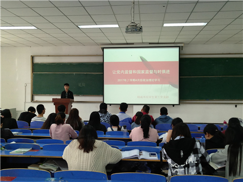 为了增加党员增强反腐倡廉意识,加强共产党员党内监督的规范化、制度化,4月20日上午10点30分,精诚书院学生第三党支部在问学楼301教室组织了以“党内监督和国家监督与时俱进”为主题的政治理论学习。第三党支部的全体成员如数参加,本次理论学习由学生第三党支部书记李帅同志主持。