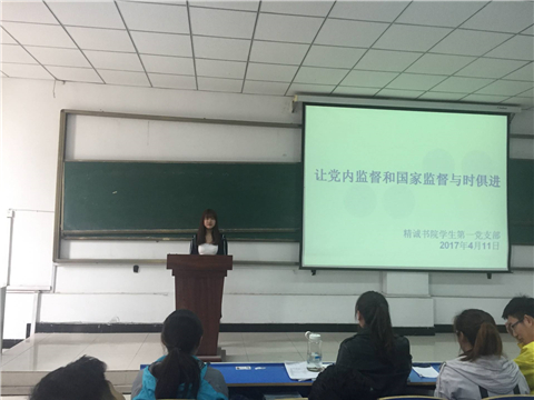 为加强我院党组织的思想建设,4月11日下午,精诚书院第一党支部于问学楼202教室召开了“让党内监督和国家监督与时俱进”的批评与自我批评会,全体党员参加了本次会议。