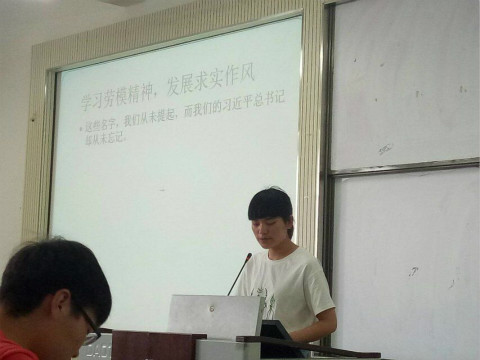 活动伊始,在药学药剂大班团支书耿崇荦同学的主持下,大家共同观看了“鱼水情深:劳模精神的时代诠释”主题教育视频,观看结束后,各支部代表就视频内容各抒己见,纷纷发表自己的看法。其中16级药物制剂83班支部代表张晓娜说到:“劳模精神是民族精神的重要组成部分,值得我们在校大学生去学习,去发扬。”