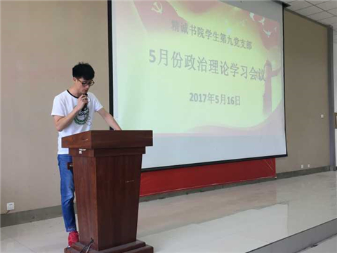 为进一步学习“两学一做”学习教育活动,面向全体党员深化党内教育的重要实践,推动党内教育从“关键少数”向广大党员拓展、从集中性教育向经常性教育延伸的重要举措。促使大家争做“讲政治、有信念,讲规矩、有纪律,讲道德、有品行,讲奉献、有作为”的合格党员。5月16日下午,精诚书院学生第九党支部在问学楼T教室召开“四讲四有”的理论学习会议,支部全体党员、入党积极分子参加会议。会议由副书记刘富龙同志主持。