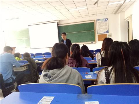 澜琪雅文负责人蒋主管首先通过播放宣传片、PPT展示、面对面交流等方式向同学们介绍了公司的概况、人员需求以及岗位要求等。接着她就同学们比较关心的薪资待遇、合同签订、发展前景等相关问题向大家做了详尽的解释。