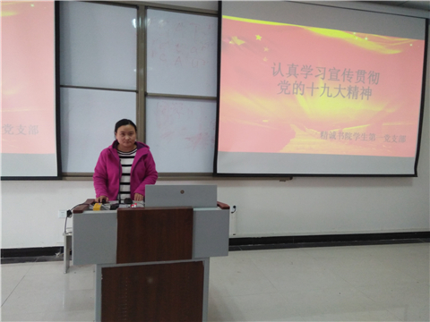11月14日下午,精诚书院学生第一党支部于第二大教室召开了以“认真学习宣传贯彻党的十九大精神”为主题的政治理论学习,全体党员出席了本次会议。