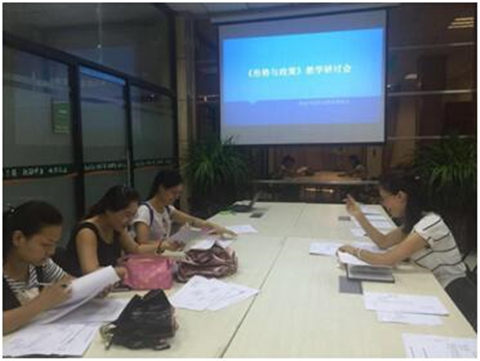 邀请《形式与政策》和《思想道德修养与法律基础》的任课老师们前来进行教学研讨,任课老师们提出了很多宝贵意见,对教研室管理有很大的实际意义,对学期初的工作进行统一安排部署。给各位老师分发教学日历和课程表,对学期初的重点工作进行了梳理。