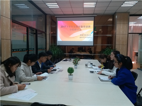 11月27日上午,精诚书院2017下半年党员发展对象培训班分组研讨会在新区会议室进行。本次会议由精诚书院党总支组织委员李高杰老师主持,我书院6名在校发展对象参会。