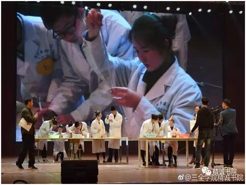 让所有老师和同学都注意到她是在三全学院首届海华杯药学生技能大赛上。虽然比赛中关关难闯,但在队长王艺博的带领下,他们的队伍势如破竹,击败强劲的对手,在最后抢答环节,连抢5题,勇夺第一。但你可知,为了这个比赛,她不得不竭尽全力地辅导队伍其它人员;不得不镇定自若地承受队伍最大的压力;不得不在自己空闲时拼尽全力地复习学过的所有重点。决赛前三天的清明假期,她依旧是在努力看书,只为把自己能做的做到最好!
