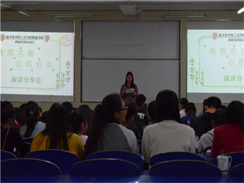 演讲分享开始后,参加演讲分享的同学们一个个激情洋溢,以饱满的热情,用清新优美的语音,表达着他们内心对于关爱生命,学会感恩的想法。其中张才进同学以浑厚嘹亮的声音款款道出对父母的感激之情;李玉洁同学爆发自己的激情,讲述自己的故事,坚定自己的理想,表达自己立志成功、成才的美好愿望,其他演讲人员时而柔和温婉似细流汩汩,时而清晰嘹亮不可遏制。为了增加演讲分享会的趣味性,姚志博老师还与学生进行互动,弹起吉他用音乐表演烘托气氛,带动大家将分享会气氛带入了高潮。分享会结束时书院负责资助工作的胡国鹏老师进行了总结讲话,其告诉大家要好好报答父母,感恩父母,感恩学校,感恩老师,时常怀着感恩的心。经济情况不好不要自暴自弃,不颓废,要励志拼搏,这样才能成功,改变自己的命运。