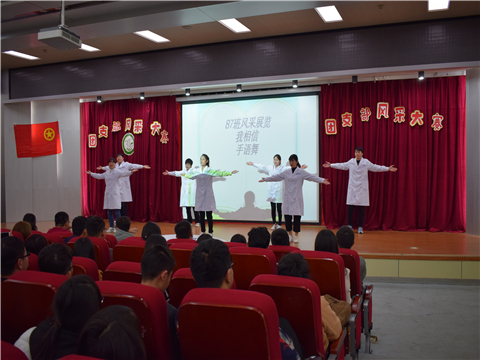 在才艺表演环节,17级66班的小品《是谁呢?》引起现场观众的热烈反响,带动了现场的氛围。小品以诙谐幽默的方式告诫大家远离贪污腐败,从表演者的表演令人捧腹大笑的地方,同样也值得深思。17级专升本临床87班由全班同学演唱的《追梦赤子心》,积极地展现了团支部的精神面貌,让人拍手叫好。无论是表演的小品、手语操,还是唱歌等其他的节目形式,都从各个方面展现了属于各团支部的特色及风采。