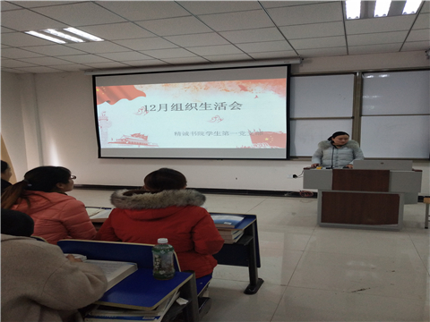 20171218日,精诚书院第一党支部于371教学基地第二大教室开展组织生活会。此次会议由第一党支部书记杨卫红同志主持。出席此次会议的有:本支部所有正式党员、预备党员。