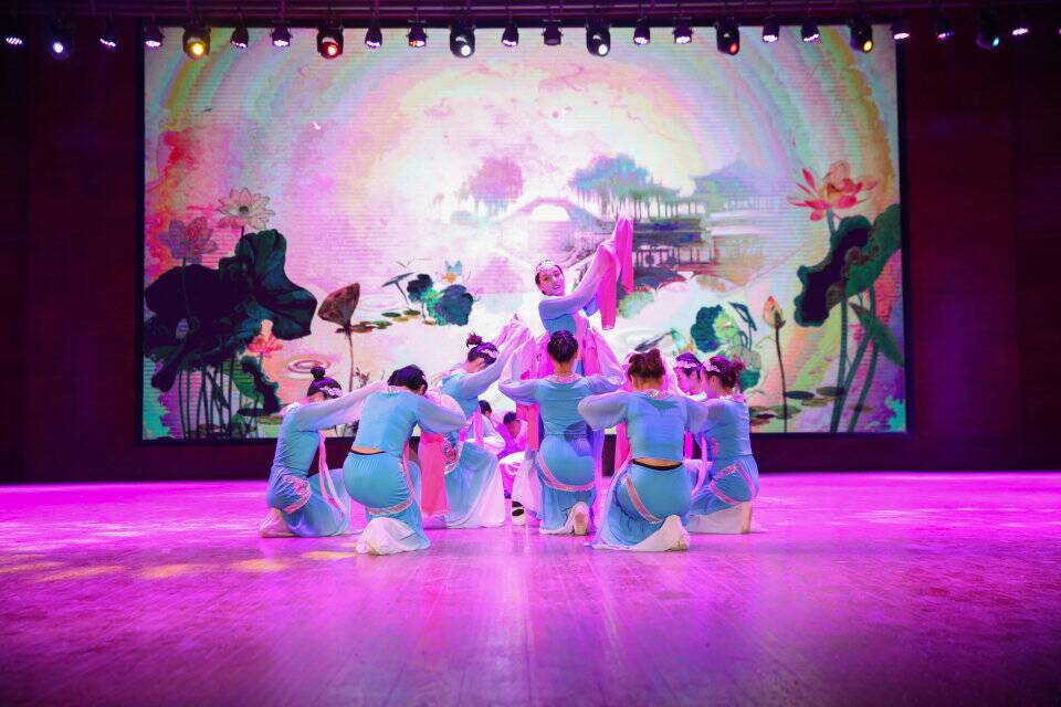 第三幕全“橙”热恋,国之传承,功夫伴行,一幕中国功夫让大家充分感受到中国古典文化的深厚底蕴。“锦瑟无端五十弦,一弦一柱思华年”悠扬的乐声响起,那一颦一笑都尽显风华无限的古典舞“繁花”。你可能错过了故事的开头,但你在或者不在,故事的结尾都在那里等着你,不管是《都选C》,还是《不醉不会》亦或是《在雨中》都让大家感受到同学们青春不老的信念。