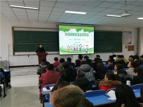 寒假将至,为了加强同学们遵纪守法的观念,提高自我防范的能力,增强自身的安全意识,确保度过一个美好的假期。2018年1月8日下午,精诚书院新乡校区辅导员石中尼老师,在问学楼301教室为一大班开展“寒假期间安全教育”主题班会。