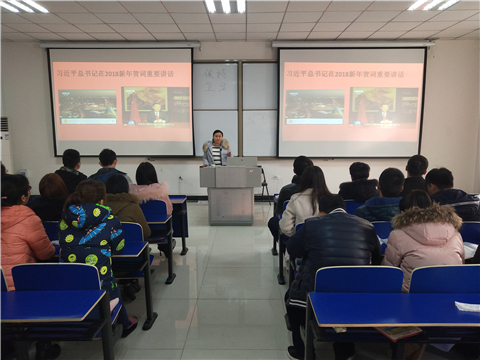 18日下午,精诚书院学生第一党支部在371教学基地第二大教室召开1月份政治理论学习会议,本次会议以“学习贯彻习近平总书记在2018年新年贺词重要讲话”为主题,由精诚书院学生第一党支部书记杨卫红主持,全体党员及预备党员出席了本次会议。