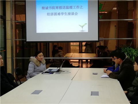 1月18日,精诚书院于精诚书院会议室开展了“精诚书院寒假送温暖特困生座谈会”会议。参加会议的人员有精诚书院党总支副书记万建苗,辅导员杨卫红,以及任旭东,韩新亚,杨天增等10名学生代表。