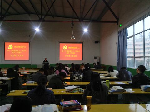 2018年3月14日,精诚书院第三党支部为学习李克强总理在十三届全国人大一次会议上所作的《政府工作报告》于焦煤基地大教室开展三月份政治理论学习,参与此次会议的有第三党支部党支部书记李帅及其全体党员。