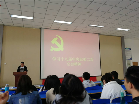 为了学习贯彻习近平总书记“十九届中央纪委二次全会精神”,2017年4月16日,精诚书院学生第四党支部在问学楼T教室开展“学习十九届中央纪委二次全会精神”的专题政治理论学习。参与此次学习的为第四党支部党支部书记随洁英同志及其全体党员。