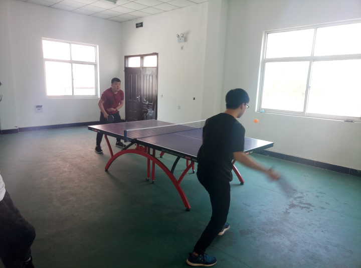拔河比赛后进行乒乓球比赛,本次比赛共分为男子单打和女子单打2个项目。随着负责人邵峰对比赛规则的宣布,12名男选手和10名女选手进行了抽签,比赛正式拉开帷幕。赛事现场热闹而又有序的进行着,最后在欢声笑语中,遵博嘉和杜章荣荣获了本次比赛的男女单打冠军,张志发和刘新叶荣获亚军、张天一和陶安琪荣获季军。