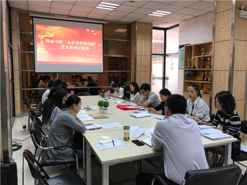 为深入学习贯彻党的十九大和全国高校思想政治工作会议精神,扎实推进“两学一做”学习教育常态化制度化,不断提升党支部书记做好新形势下高校基层党建工作和思想政治工作水平,5月4日下午,精诚书院党总支在平原校区书院会议室开展了“业余党校培训班”党建系列活动之党支部书记专题培训会,党总支书记张新出席会议,会议由党总支组织委员李高杰主持,全体支部书记参会。