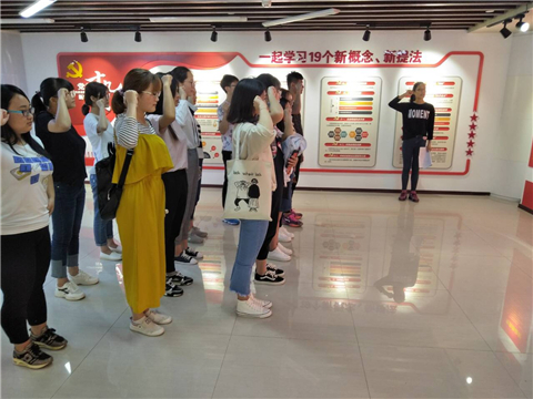 新时代学习馆分为“不忘初心学党史”、“继续前行知党情”、“红色记忆铸党魂”、“铭记誓词感党恩”、“牢记使命跟党走”、“走进新时代开启新征程”六大专题展区,黄老师以图文并茂、红色书籍、影像视频等形式,全面展示了我党96年来波澜壮阔的奋斗历程和举世瞩目的辉煌业绩。参观过程中,在“铭记誓词感党恩”展区,黄老师带领大家举起右手宣誓重温了入党誓词,并指出了中国96年的奋斗不息,96年的前赴后继,中国共产党一次次面临历史的重要关头,又一次次实现了历史性的抉择。现场所有人都深受感染,其中,入党积极分子申若凯表示通过学习党史,能更好地领悟党在成长历程中所经历的坎坷,从中汲取其成功的经验,不仅要将其继承下来,而且要传承下去,并进一步将其发扬光大。