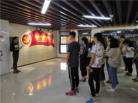 为进一步深入学习贯彻党的十九大精神,加强党史教育,2018年5月10日下午,精诚书院组织2018年第一期业余党校培训班。参训学员走进平原校区图书馆一楼,参观“新时代学习馆”,党办黄宇茜老师担任讲解员。