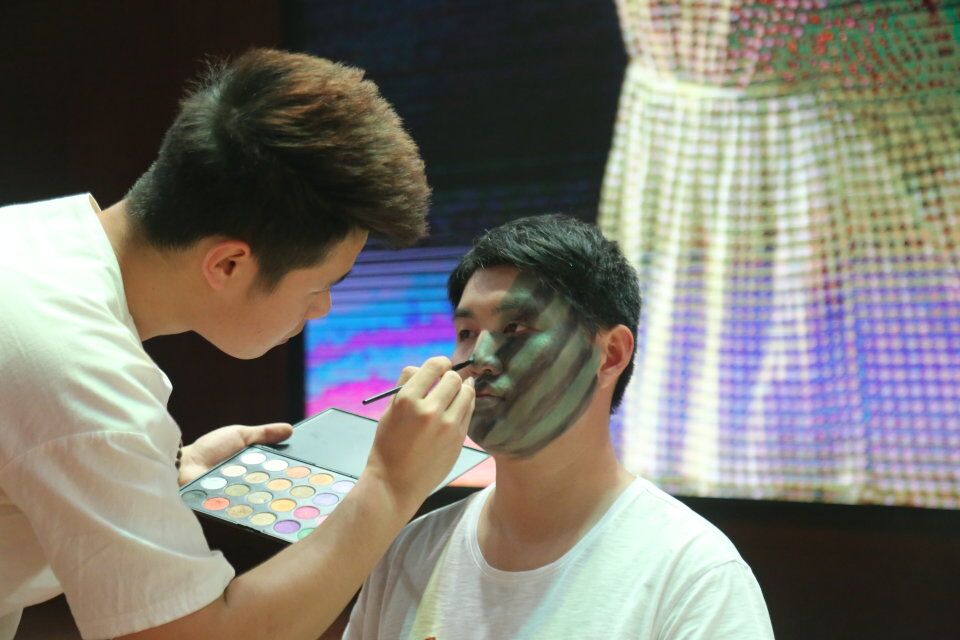 伊始,参赛选手先进行素颜展示,此项占比百分之十。素颜展示后,选手们开始在舞台两侧紧张有序的筹备自己的作品。打底、遮瑕、定妆、描眉、晕染,每一个步骤都有序进行着。化妆师们大胆和创新的思维使一幅幅作品呈现在观众面前,此刻,眉笔、眼刷、唇刷等在化妆师的手中都变成美的创造介质。同时,现场还安排了有奖知识竞答与现场观众进行互动,辅以拉丁舞、歌曲等节目表演。