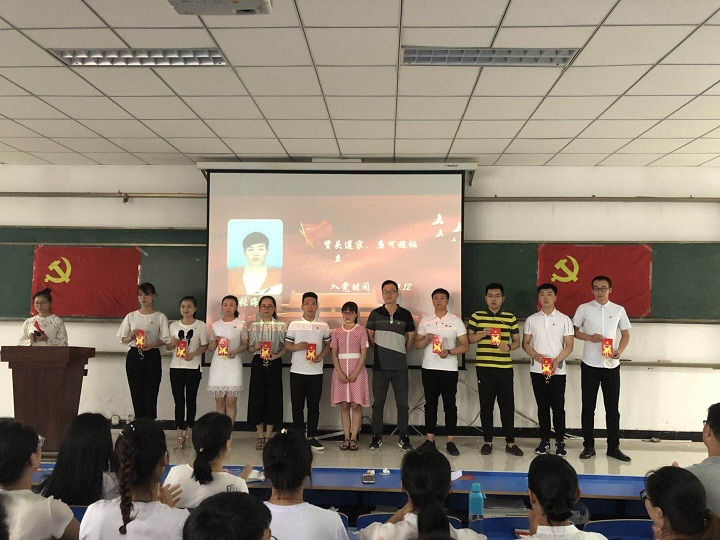 大会在庄严的国歌声中开始。首先,党总支副书记万建苗为毕业生党员上了最后一次党课《做新时代的时代新人》,她在对圆满地完成学业、即将踏上新征途的毕业生党员送上了最美好的祝愿的同时,也对毕业生党员提出了要“胸怀理想、坚定信念、履职尽责、真抓实干、坚持实践第一、善于动脑,勤于思考,要做创新的先锋,做一名合格的共产党员”等七点要求,并希望他们在将来踏入社会后时刻牢记自己的党员身份和历史使命,时时处处发挥先锋模范作用,为母校争光,为党旗添彩。接着,毕业生党员代表庞红帅,康翰云,刘军杰再次告白母校,深切表达了对母校和恩师的不舍、感谢以及祝愿;同时还对在校生党员进行了经验交流分享。其中党员代表刘军杰就自己在新乡市第二人民医院实习经历与大家进行分享实习与就业的感悟,他谈到从刚进入医院时的懵懂到帮助老师穿刺和心肺复苏等外科操作,再到逐渐得到老师的认可和信任。他的这种有担当、不怕困难、遇事冷静,胆大心细优秀品质,博得了在场每位同志的阵阵掌声。随后,万建苗同志、党支部书记代表姚志博同志为毕业生党员代表佩戴党徽并赠予红色读本《党的十九大文件汇编》,希望全体毕业生党员能够明确身份、不忘初心、牢记使命,将我们的红色精神发扬光大。最后,全体党员一起重温了入党誓词,并在廉洁从业承诺书上郑重地签上了自己的名字,大家纷纷表示,要在即将奔赴的医学岗位上,牢记使命、勇担责任、永葆先进。