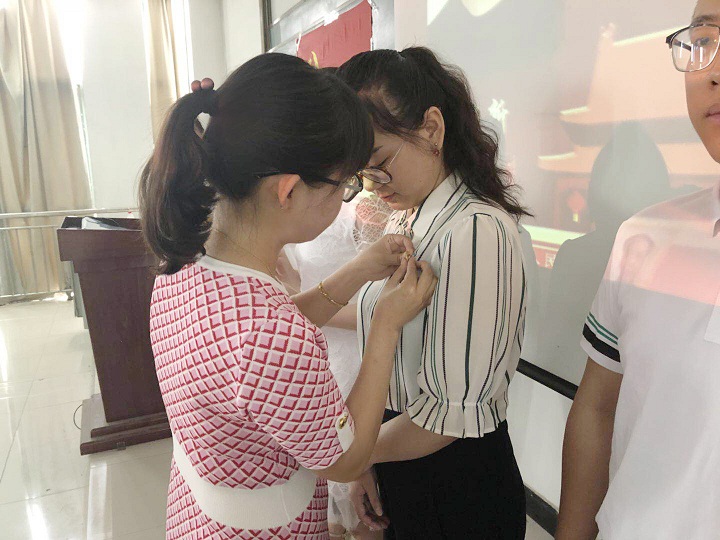 大会在庄严的国歌声中开始。首先,党总支副书记万建苗为毕业生党员上了最后一次党课《做新时代的时代新人》,她在对圆满地完成学业、即将踏上新征途的毕业生党员送上了最美好的祝愿的同时,也对毕业生党员提出了要“胸怀理想、坚定信念、履职尽责、真抓实干、坚持实践第一、善于动脑,勤于思考,要做创新的先锋,做一名合格的共产党员”等七点要求,并希望他们在将来踏入社会后时刻牢记自己的党员身份和历史使命,时时处处发挥先锋模范作用,为母校争光,为党旗添彩。接着,毕业生党员代表庞红帅,康翰云,刘军杰再次告白母校,深切表达了对母校和恩师的不舍、感谢以及祝愿;同时还对在校生党员进行了经验交流分享。其中党员代表刘军杰就自己在新乡市第二人民医院实习经历与大家进行分享实习与就业的感悟,他谈到从刚进入医院时的懵懂到帮助老师穿刺和心肺复苏等外科操作,再到逐渐得到老师的认可和信任。他的这种有担当、不怕困难、遇事冷静,胆大心细优秀品质,博得了在场每位同志的阵阵掌声。随后,万建苗同志、党支部书记代表姚志博同志为毕业生党员代表佩戴党徽并赠予红色读本《党的十九大文件汇编》,希望全体毕业生党员能够明确身份、不忘初心、牢记使命,将我们的红色精神发扬光大。最后,全体党员一起重温了入党誓词,并在廉洁从业承诺书上郑重地签上了自己的名字,大家纷纷表示,要在即将奔赴的医学岗位上,牢记使命、勇担责任、永葆先进。