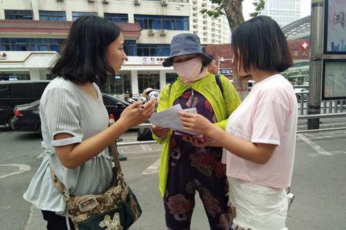 有了专业医生的指导,橙帆船团队信心十足的走进人群进行调查。大家在医院周边,二七广场、国贸大厦等人流量大的地方进行随机调查,采用给大家分发调查问卷填写的形式,对于在填写过程大家不明白的问题或是模棱两可的答案,队员们有根据查找的资料对问题给予解释和说明。调察工作井然有序的顺利完成,当晚我们整理调查资料,发现大家普遍不了解抗生素,针对这一情况,队员们适当调整了宣讲的问题内容,争取给大家进行一次有用讲解。在路访中一位环卫工阿姨说她女儿小时候身体弱,经常生病,医生就开了大量抗生素药物让她服用,现在女儿一个小小的感冒就要吃很长时间的药才会好。队员们对她女儿的这种状况,对比分析了一下,告诉她这是过度使用抗生素导致自身免疫能力下降的原因,给她讲了过度使用抗生素的危害,接着又给她提出了一些相关的意见,让她们以后尽量避免使用抗生素或者少用抗生素。可能是我们被我们充足的准备及专业能力说服了,越来越多的路人对我们的宣讲表示感兴趣,给予我们很大的支持。
