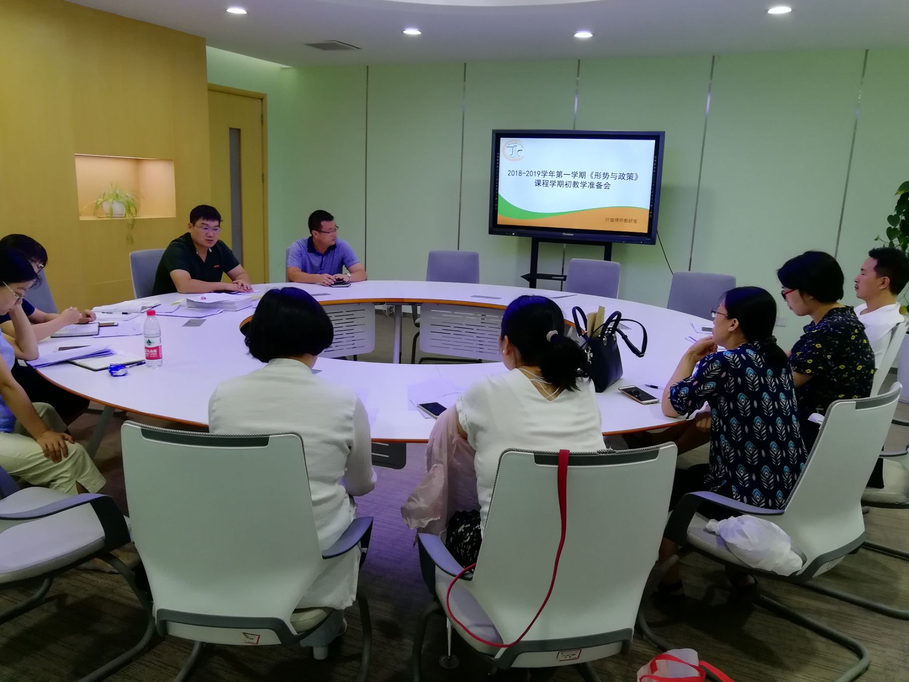为确保新学期《形势与政策》课教学工作顺利进行,8月22日上午,价值情怀教研室在行政楼第二会议室召开了新学期《形势与政策》课程教学准备会。学务部领导高度重视,学务长邱永健,学务部副主任赵云娟及《形势与政策》的授课教师参加了会议。