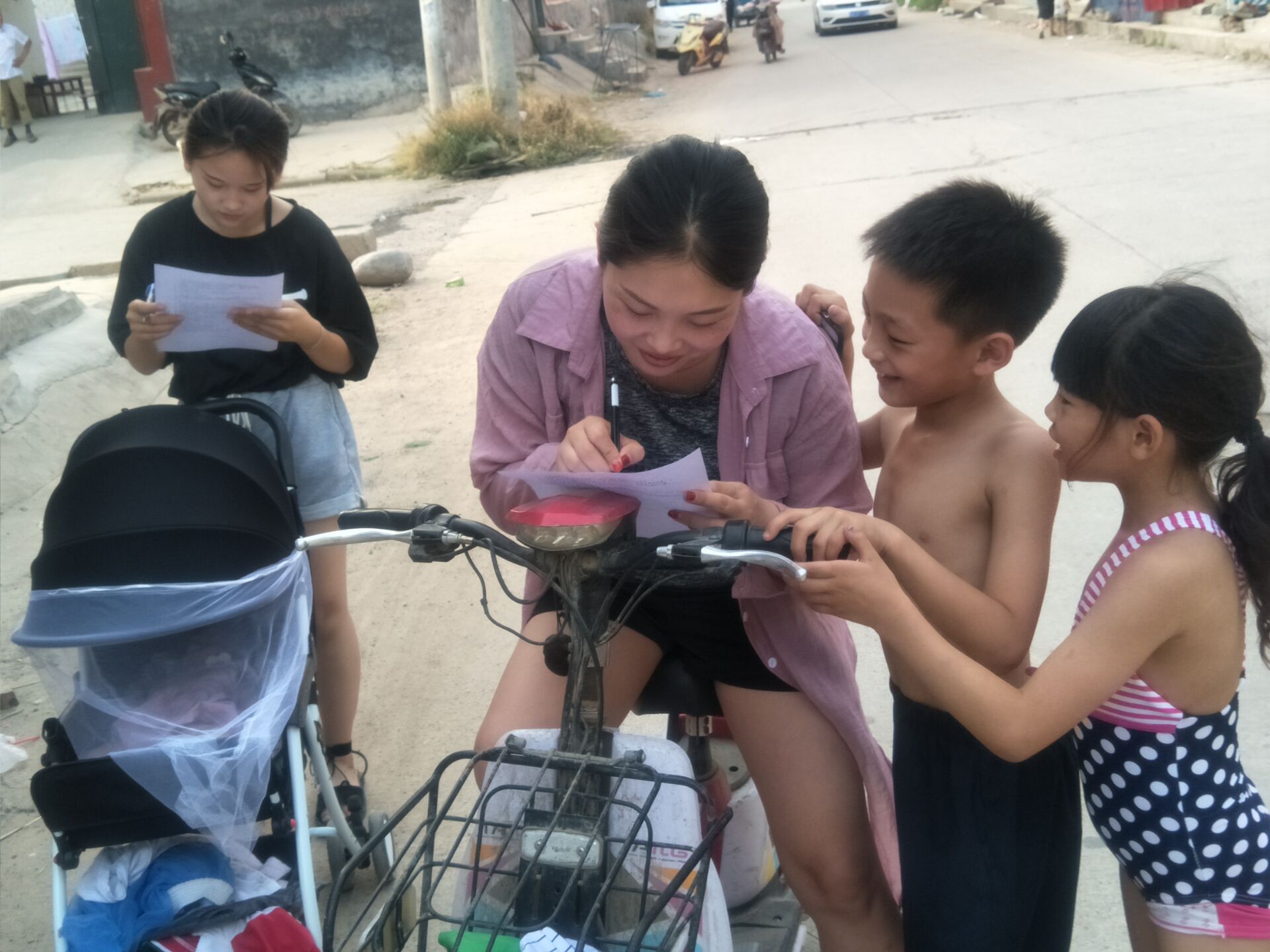第一天我们发放了防拐常识与安全意识问卷调查表,以便了解小朋友的安全意识。这一环节在队员和家长的配合下,进行的很顺利。