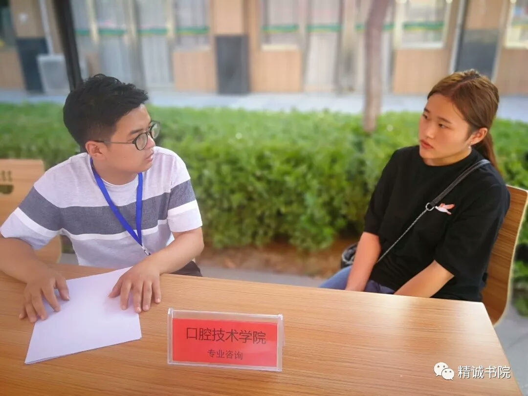 在精诚书院的迎新现场,分别设有药学、检验与影像技术、口腔医学技术等专业的咨询台,各专业院系的教师党员热情接待前来咨询的新生及家长,让他们对自己所学专业有更加清晰的认识。