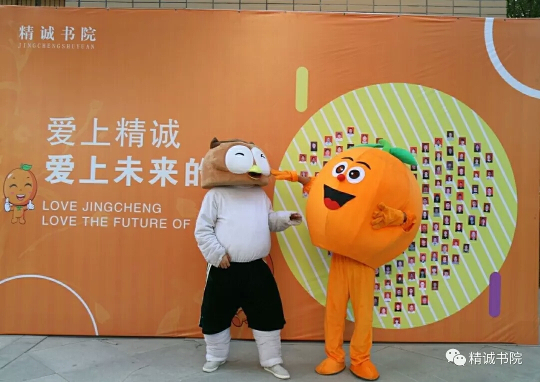 书院门前的主题喷绘“爱上精诚,爱上未来的你”是精诚对你最好的告白。为了准备这份惊喜,精小诚可是花了很多的心思,前期向精诚每一位2018级小萌新征集了证件照,一张张证件照拼成了精诚的“大爱心”,一颗心传达的是书院对所有新生的祝福,也是书院心心相邀的宗旨,此情此景让每一位前来报到的新生既温暖又感动。“小橙子”和“全”博士在主题喷绘前笑脸迎新,它们凭借呆萌的外表,赢得了新生和家长们的喜爱,一位前来送哥哥上学的小朋友更是喜欢的不得了,拉着小橙子各种合影,欢乐的笑声传遍了书院,让大家之间的氛围更加融洽,还有新生们用朋友圈立牌、“学生证”在主题喷绘前合影留念。