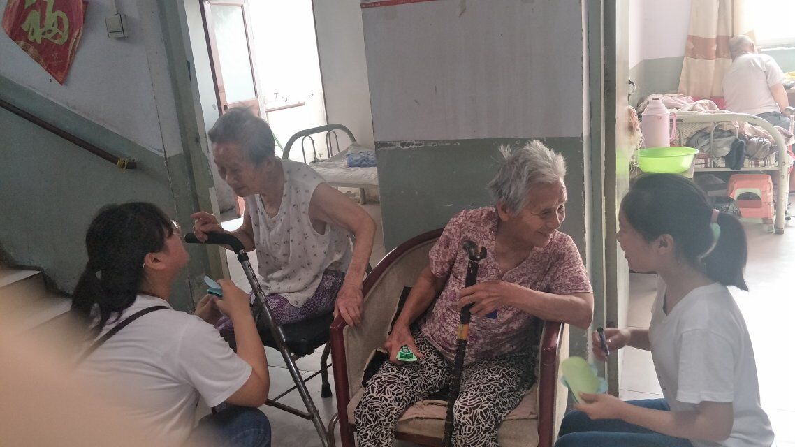 我们刚到敬老院的时候感觉很紧张,不知道如何和老人交流,但老人们用他们的热情,和和蔼,亲切的态度让我们的紧张消散。老人们还说很开心有我们的到来。