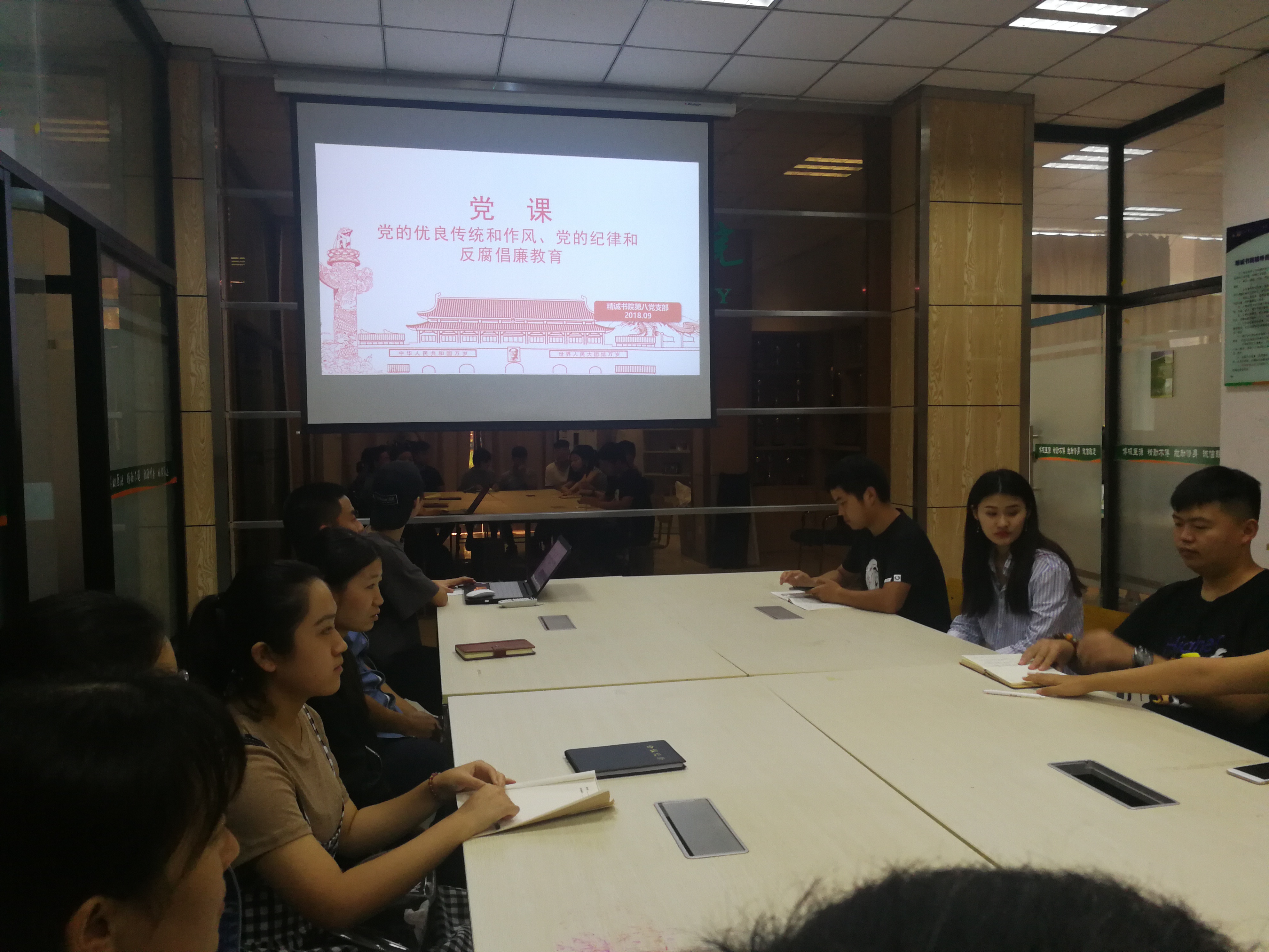 2018年9月17日,精诚书院学生第八党支部于平原校区精诚书院会议室召开了主题为“党的优良传统和作风、党的纪律和反腐倡廉教育”的党课学习,第八党支部党支部书记张阳同志以及所有在校党员、预备党员参与了此次会议。