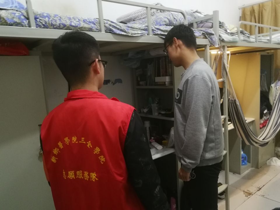 活动中,志愿者们被分成七个小组,分别对南楼、北楼进行检查。志愿者们对23:00还亮灯的宿舍进行了敲门协调劝导,给大家讲解了熬夜的危害,告诉他们熬夜是一种不好的习惯,特别是对学生这个集体来说,熬夜会导致很多问题出现,有记忆力下降,发育迟缓等问题,也会导致上火的情况,学生时期大家正是处于生长发育的关键时期,在此期间一定要保证足够的睡眠时间。熬夜也会出现其它一系列的症状,比如头疼脑胀,不仅对自己的身体健康有害,而且影响第二天的课堂效果。亮灯宿舍的同学了解了熬夜的危害后都积极配合志愿者们的工作,整个过程进行得十分顺利。