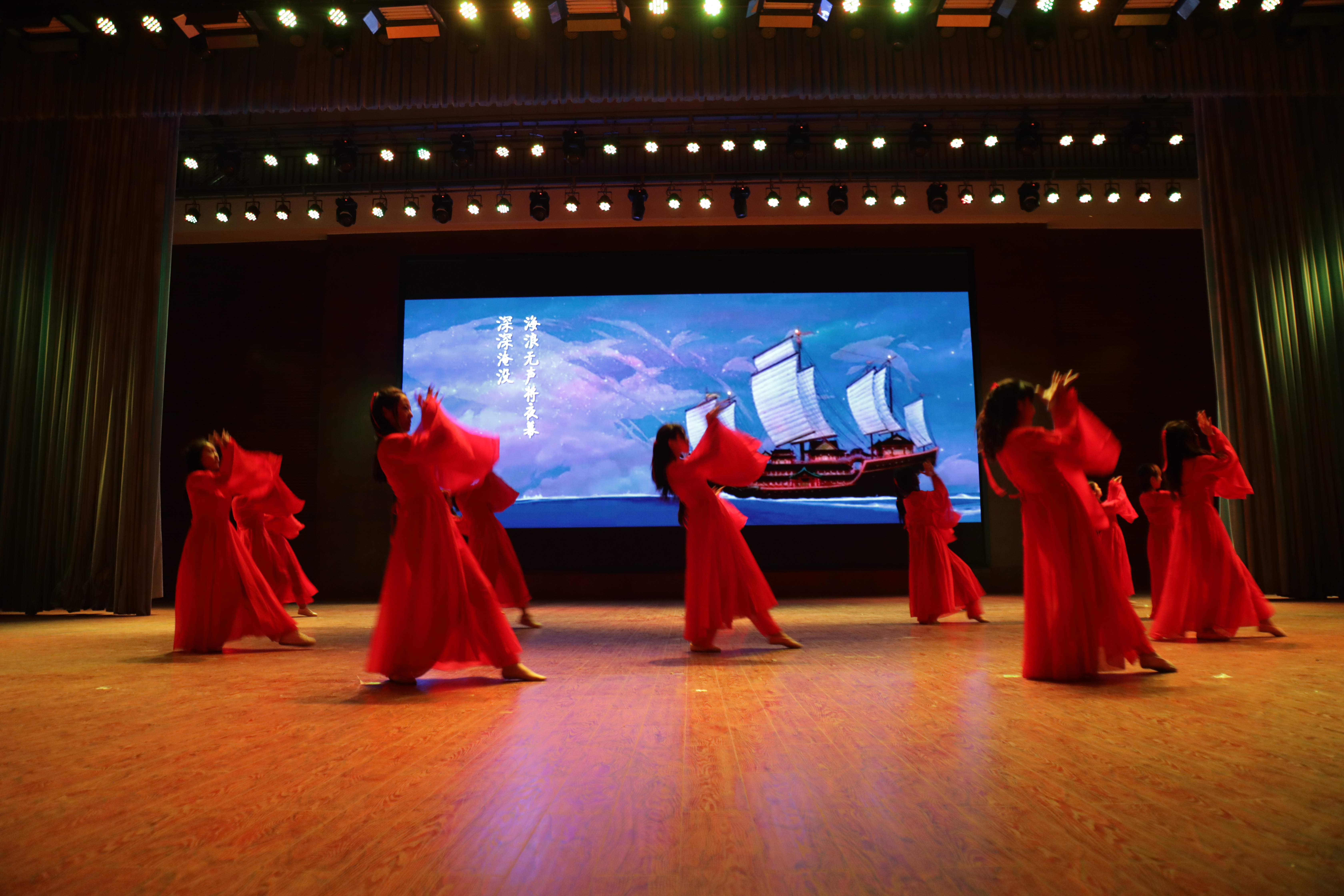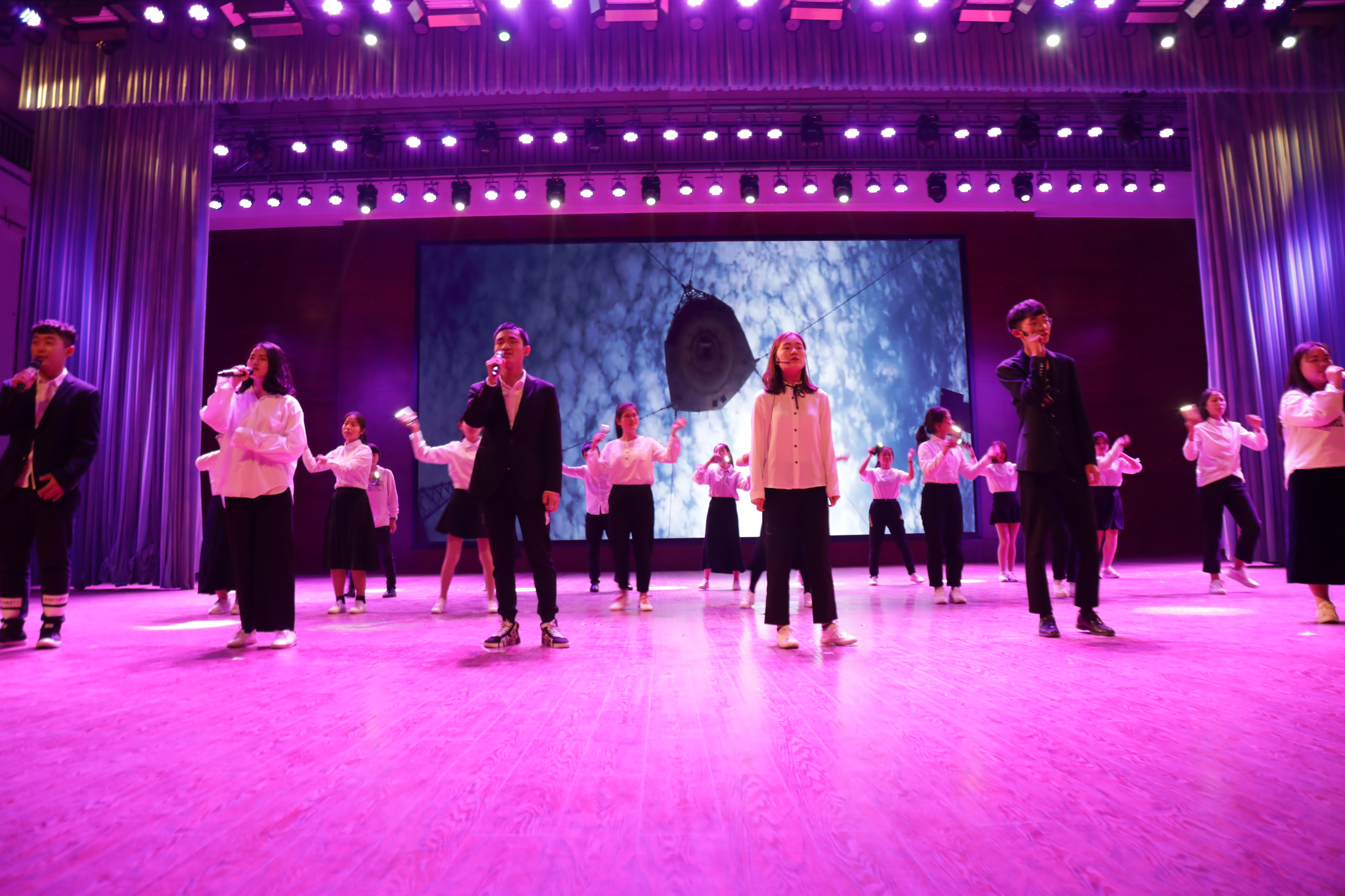 在礼赞新时代环节,一首《中国精神颂》从抗日战争到新中国成立,从抗美援朝到抗洪救灾,从神舟飞天到中国梦,列举了千千万万为国家做出贡献、千千万万在生活中闪耀真善美的人们,高昂饱满的颂读,台上台下一呼百应,整个礼堂都沉浸在不可撼动的中国精神大情大爱中。随后,一首《赞赞新时代》音乐响起时,百名同学共同唱响了美好祖国的时代最强音。
