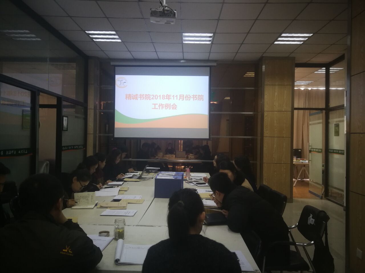 11月12日上午,精诚书院于书院会议室召开11月份工作例会,精诚书院党总支书记张新,副书记万建苗出席,全体辅导员老师、全体生活老师及学生会主席石小杉参加。
