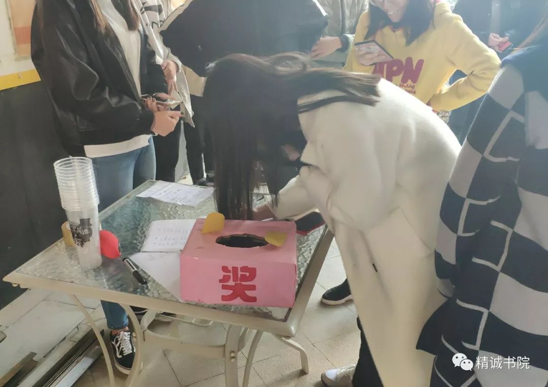 在“悦己者容”游戏中,参与其中的同学们被转的晕头转向,正式开始游戏时眼前更是一片晕眩,有人把“标记”点到了搭档的鼻子上,有人点到了搭档的头发上,游戏现场笑料百出欢声笑语不断。“眼里只有你”小游戏进行的时候也是乐事不断,因为没忍住,结果一不小心笑出来,把嘴里的水糊了搭档一脸的小组更是数不胜数。